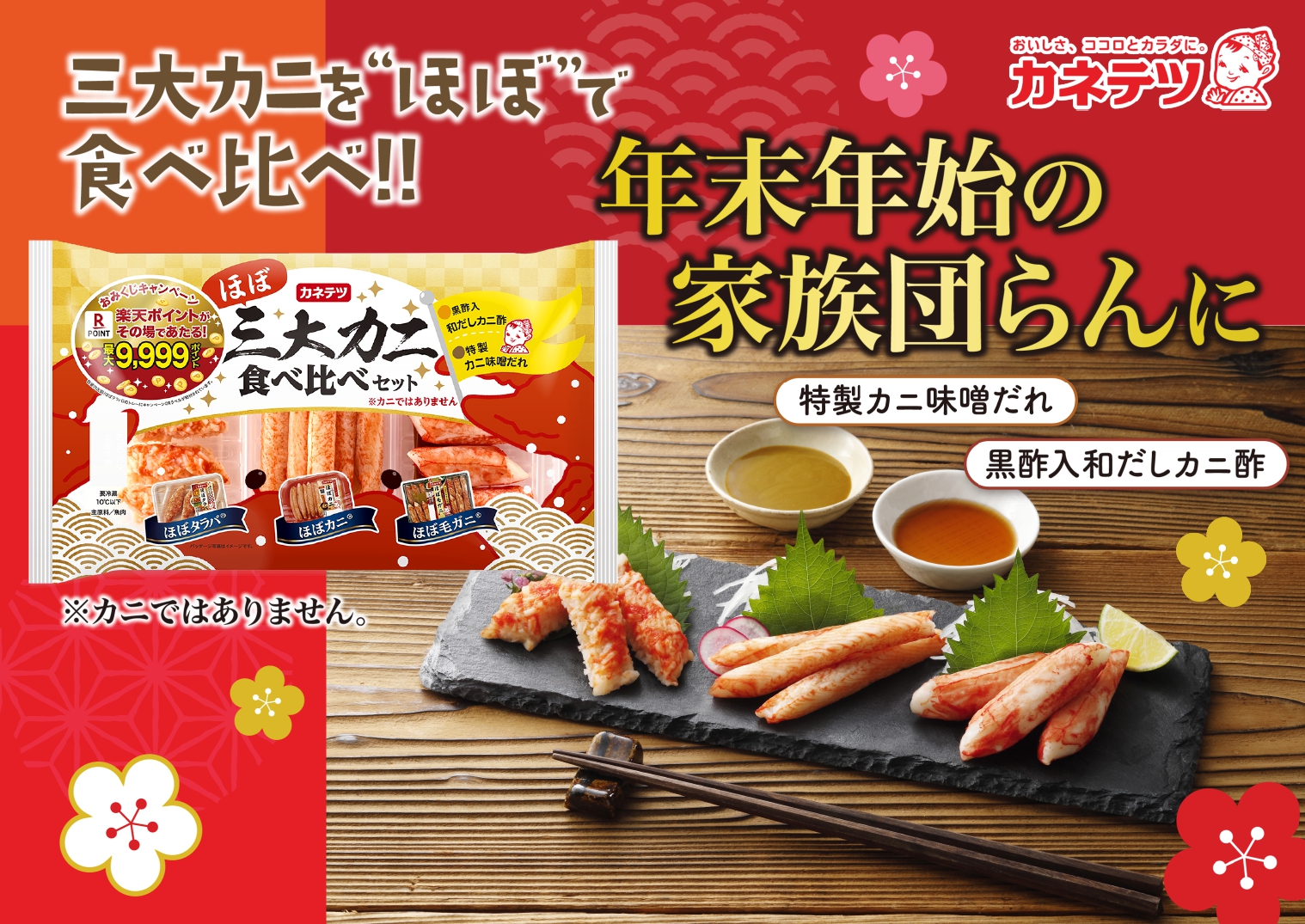今年のお正月は“ほぼ”で贅沢三昧!気軽に・豪華に・たっぷりと「三大カニ食べ比べセット」「ほぼ毛ガニ(R)」「万福 ほぼズワイ(TM)」「大漁 ほぼタラバ(R)」「ほぼいくら(R)」期間限定発売