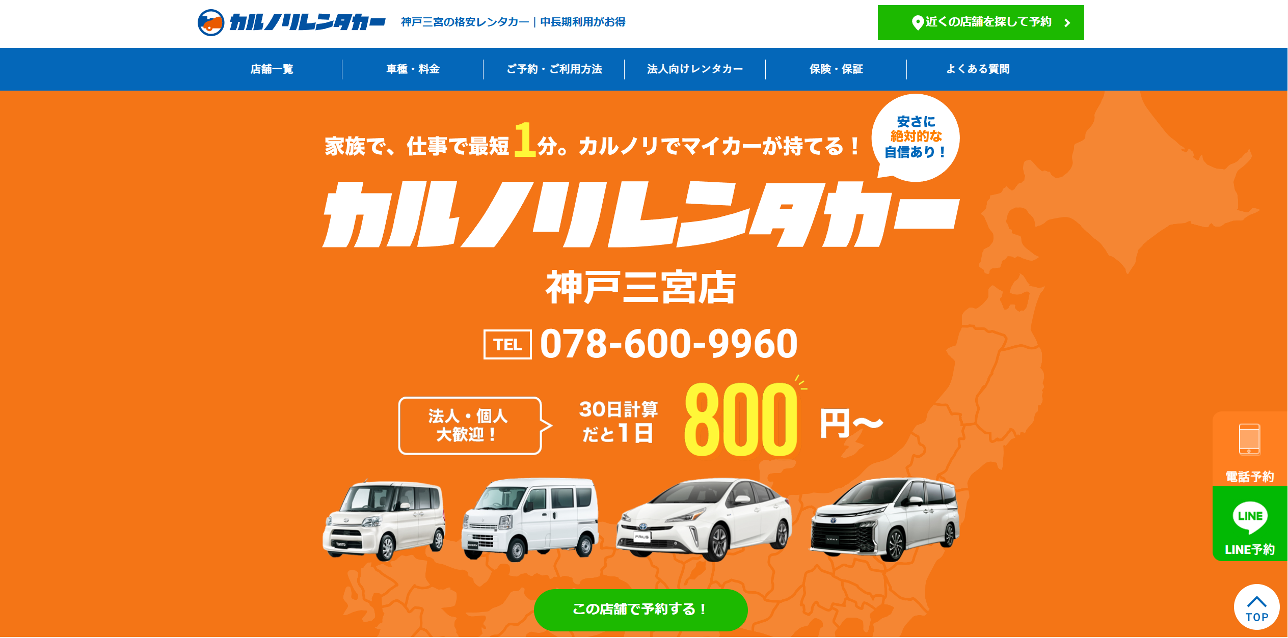格安マンスリーレンタカー専門会社、カルノリレンタカー『神戸三宮店』の累計予約件数が300件を突破!Google口コミ数は60件超!