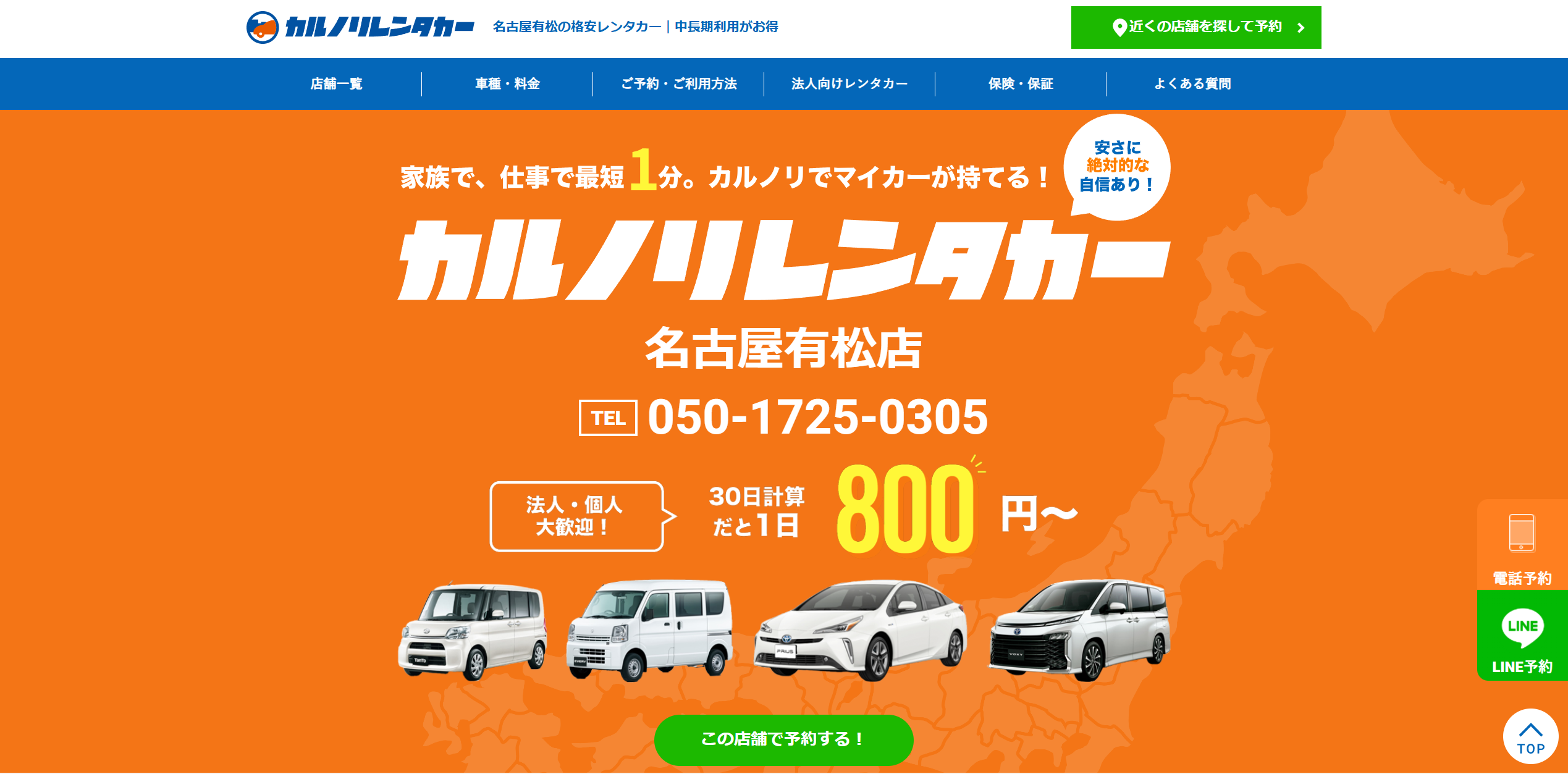格安マンスリーレンタカー専門会社、カルノリレンタカー『名古屋有松店』の累計予約件数が300件を突破!Google口コミ数は50件超!