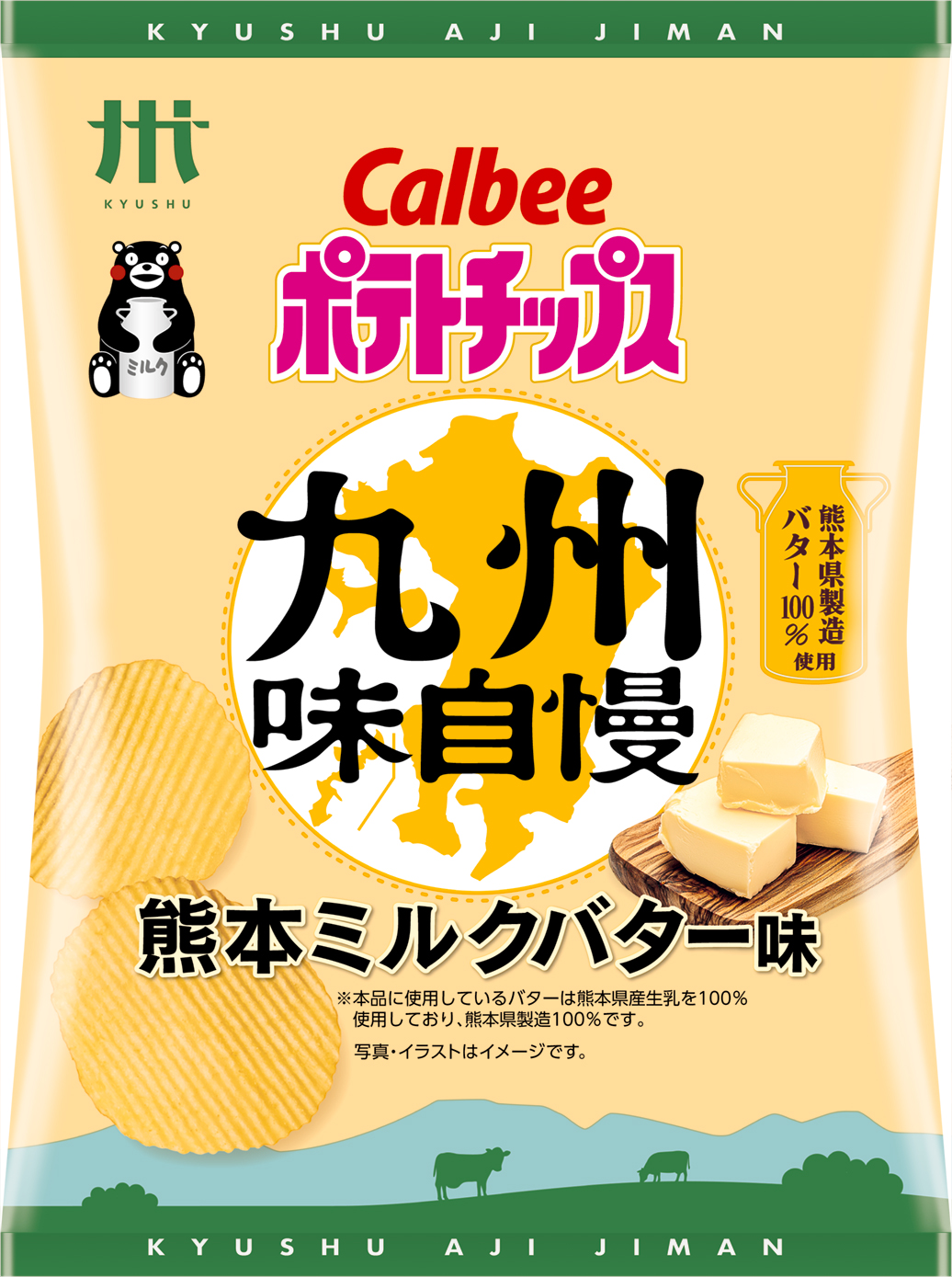 「九州味自慢」から“熊本の味”が初登場!酪農県熊本の豊かな大地に育まれた生乳で作ったバターを100%使用※1『ポテトチップス九州味自慢 熊本ミルクバター味』