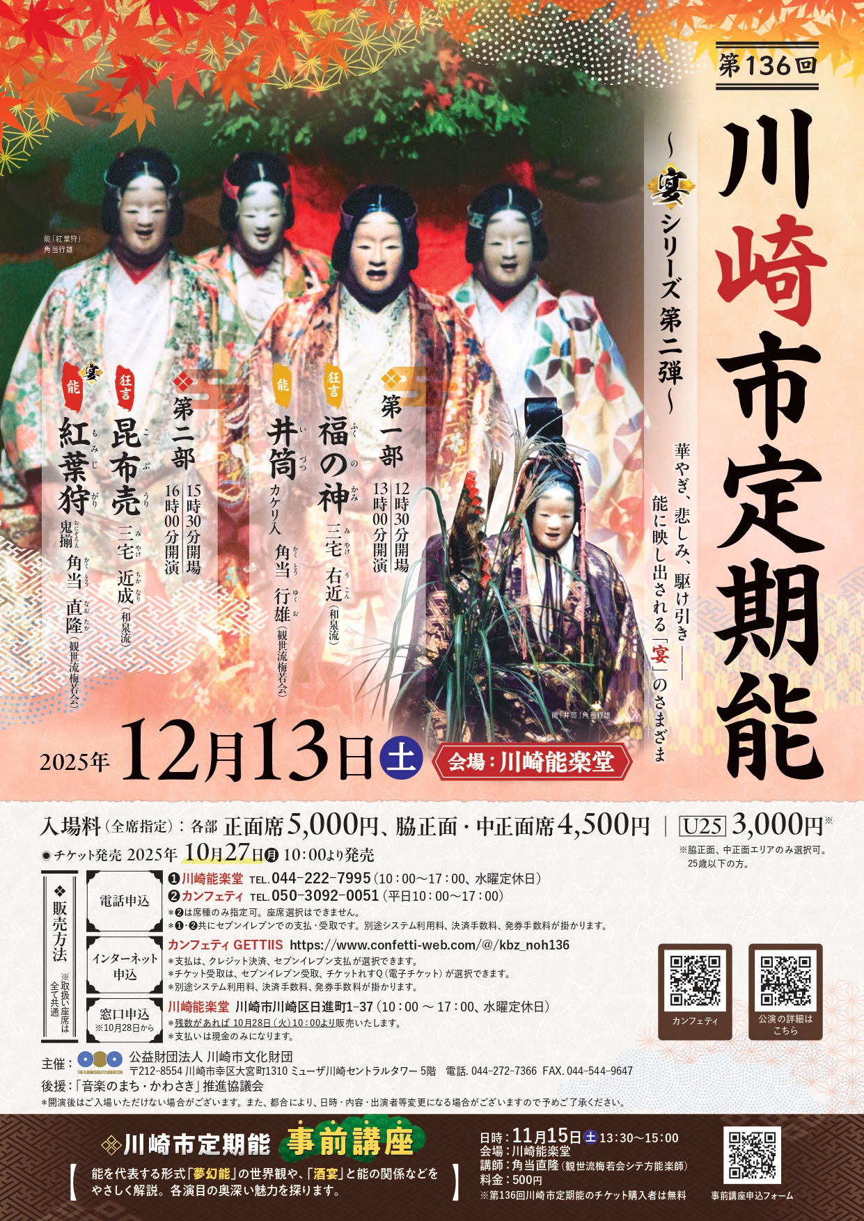 「宴」に焦点を当てた能楽公演シリーズ 第136回川崎市定期能<観世流梅若会>~宴シリーズ第二弾~ 12月13日川崎能楽堂にて上演決定