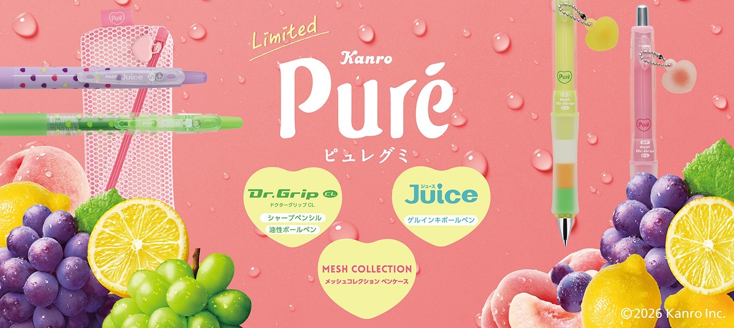 パイロットの筆記具とカンロのピュレグミが初のコラボレーション! 『ドクターグリップ/ジュース ピュレグミコラボ』限定発売
