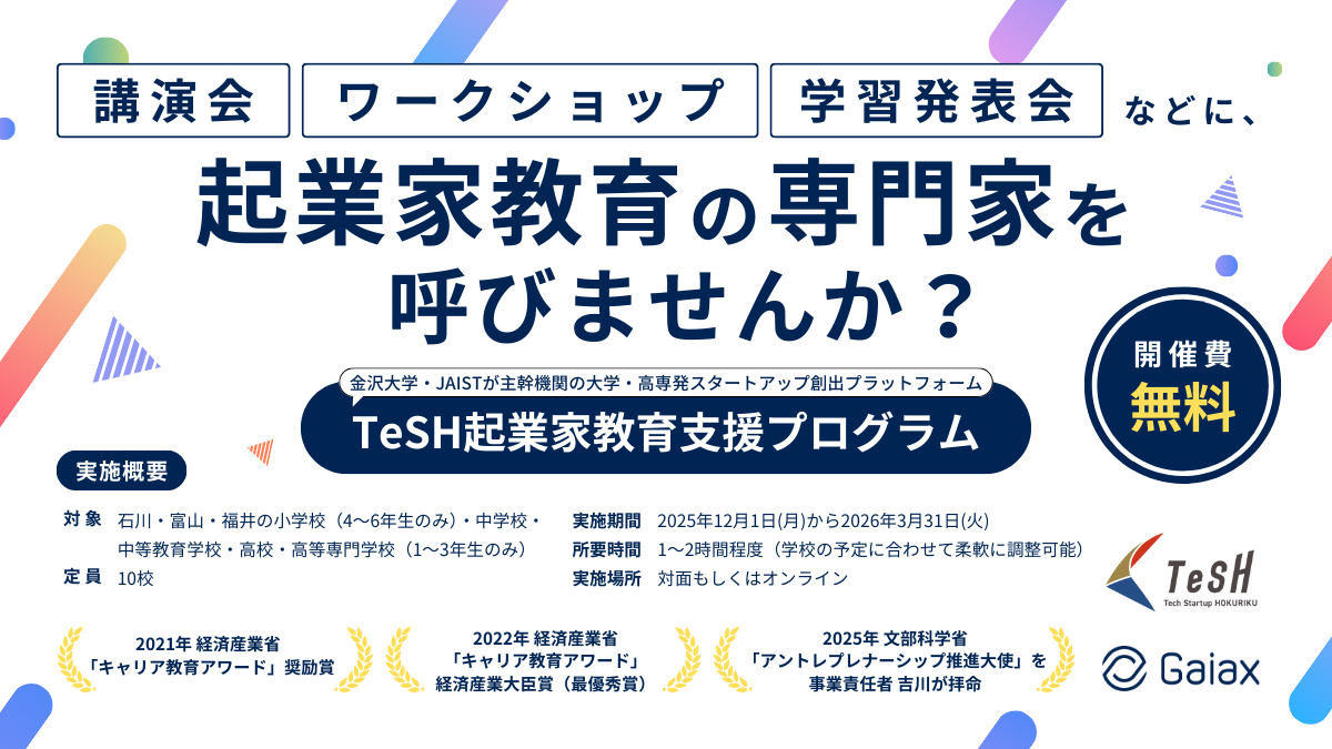ガイアックス、石川・富山・福井の小学校~高校を対象に起業家教育の講師を無償で派遣開始