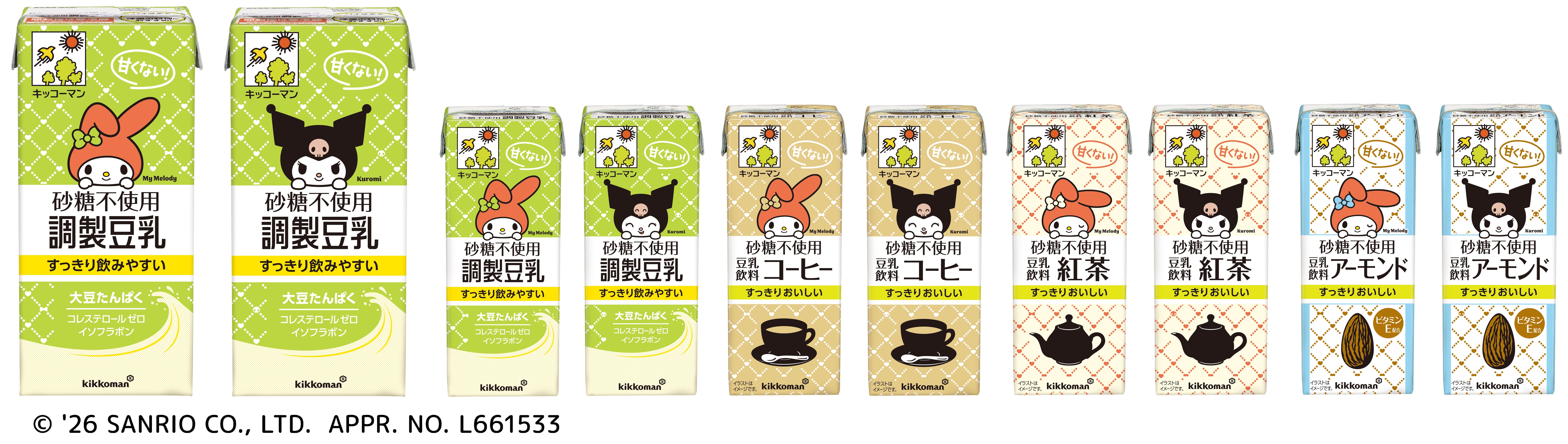 昨年の大好評を受け、「マイメロディ」「クロミ」デザインのパッケージを採用した「キッコーマン豆乳 砂糖不使用シリーズ」を期間限定で再販売!