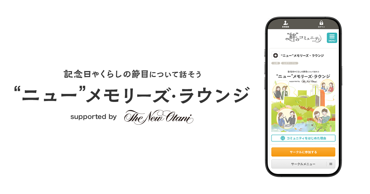 ホテルニューオータニとクオン、記念日や暮らしの節目を語り合うオンラインコミュニティ「“ニュー”メモリーズ・ラウンジ supported by The New Otani」を開設