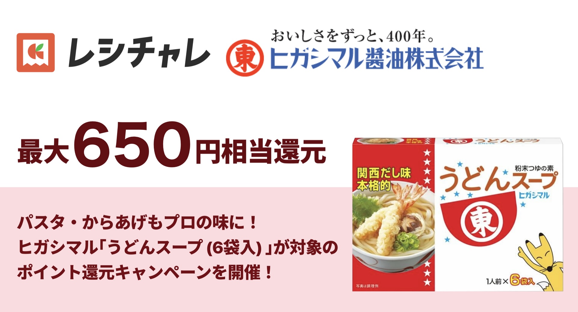 【最大650円相当を還元】パスタ・からあげもプロの味に! ヒガシマル醤油「うどんスープ」の万能な魅力を再発見するポイント還元キャンペーンが本日3月2日(月)より開始