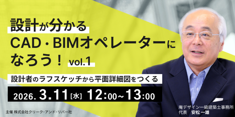 建築CAD検定の試験問題をもとに、平面詳細図作成などを解説!3/11(水)・3/18(水)「設計が分かるCAD・BIMオペレーターになろう Vol.1・2」のアーカイブ映像を無料配信!!