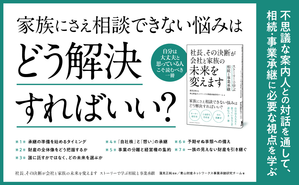 未来を映し出すことができる不思議な案内人と7人の悩める経営者・資産家のストーリーを通して、相続・事業承継に必要な知識や考え方が学べる書籍『社長、その決断が会社と家族の未来を変えます』が本日発売!