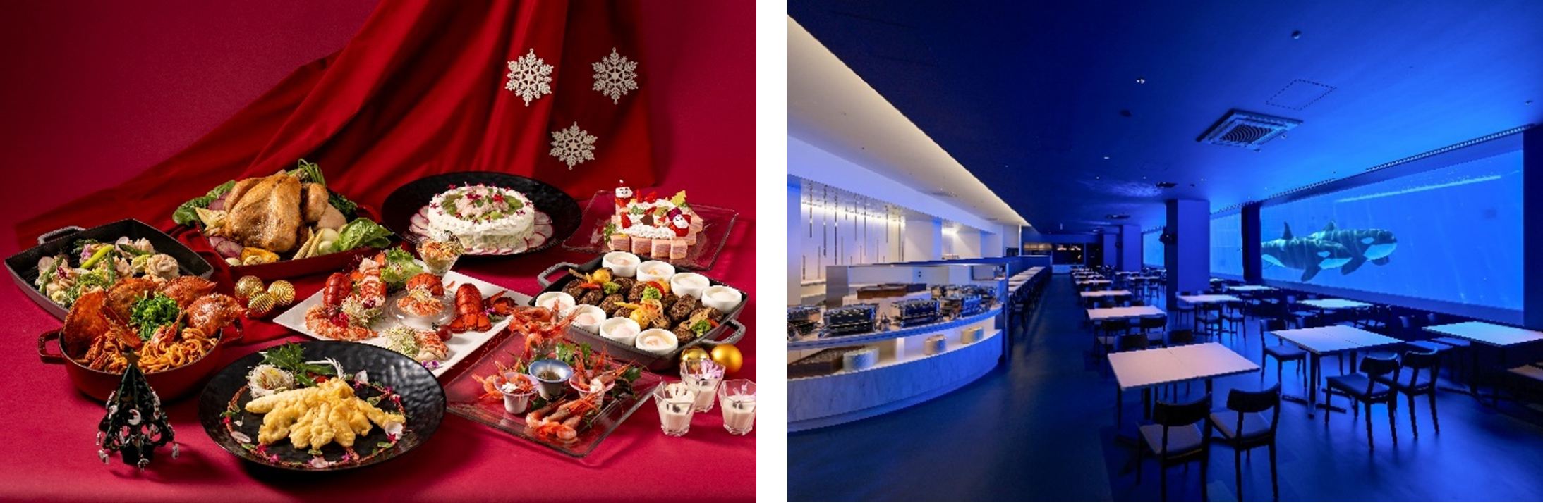 【神戸須磨シーワールド】「スマシークリスマス2025」夜のシャチが見えるレストランで「蒼のきらめき クリスマス・ディナーブッフェ」を開催