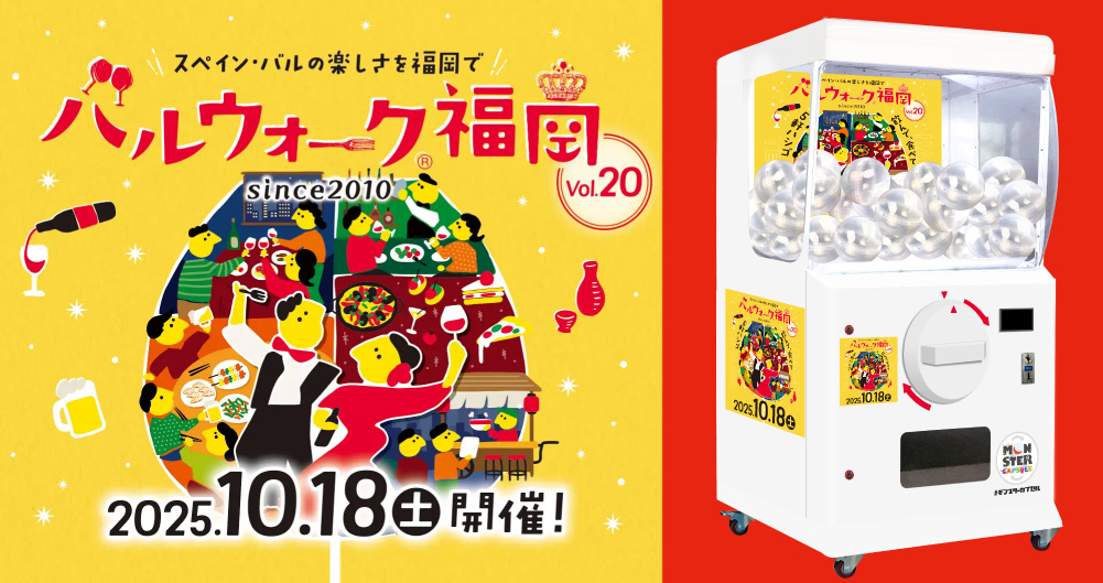 高さ2.0mの巨大ガチャ「モンスターカプセル」が福岡の街を舞台にした人気イベント 「バルウォーク福岡」に登場!