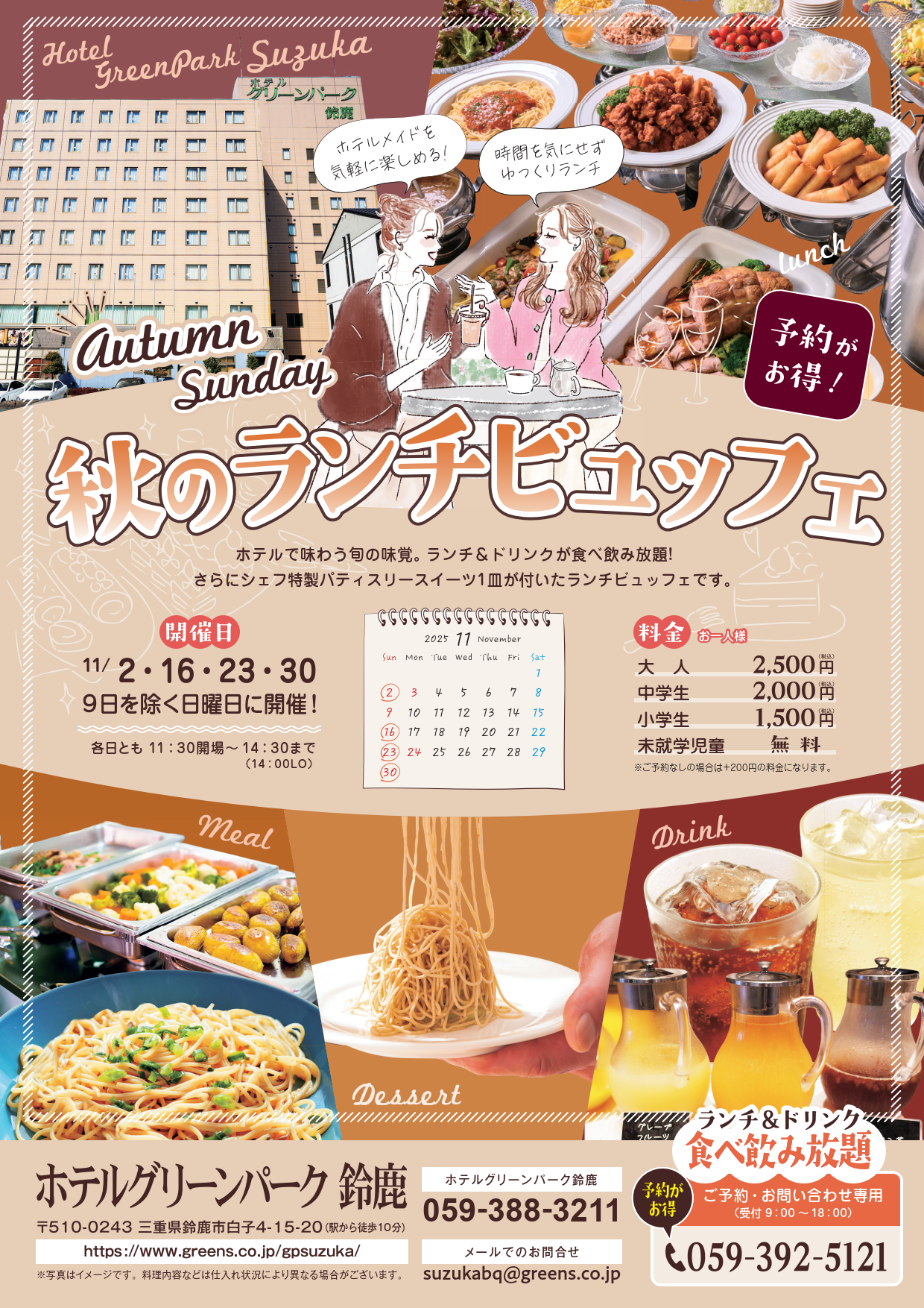 ホテルグリーンパーク鈴鹿「秋のランチビュッフェ」開催中
