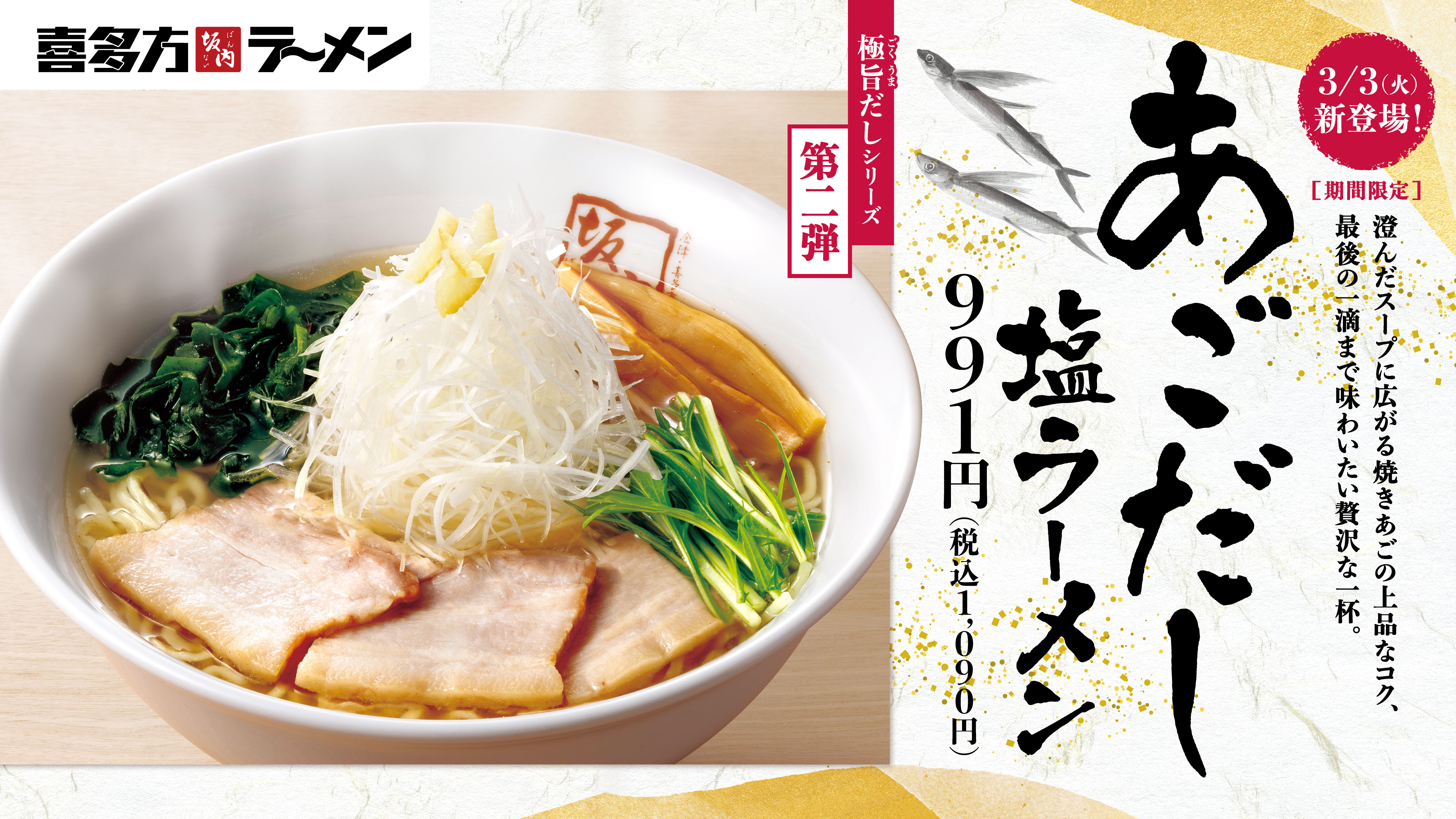 【喜多方ラーメン坂内】焼きあごの上品なコクが広がる季節限定商品『あごだし塩ラーメン』2026年3月3日(火) 発売スタート