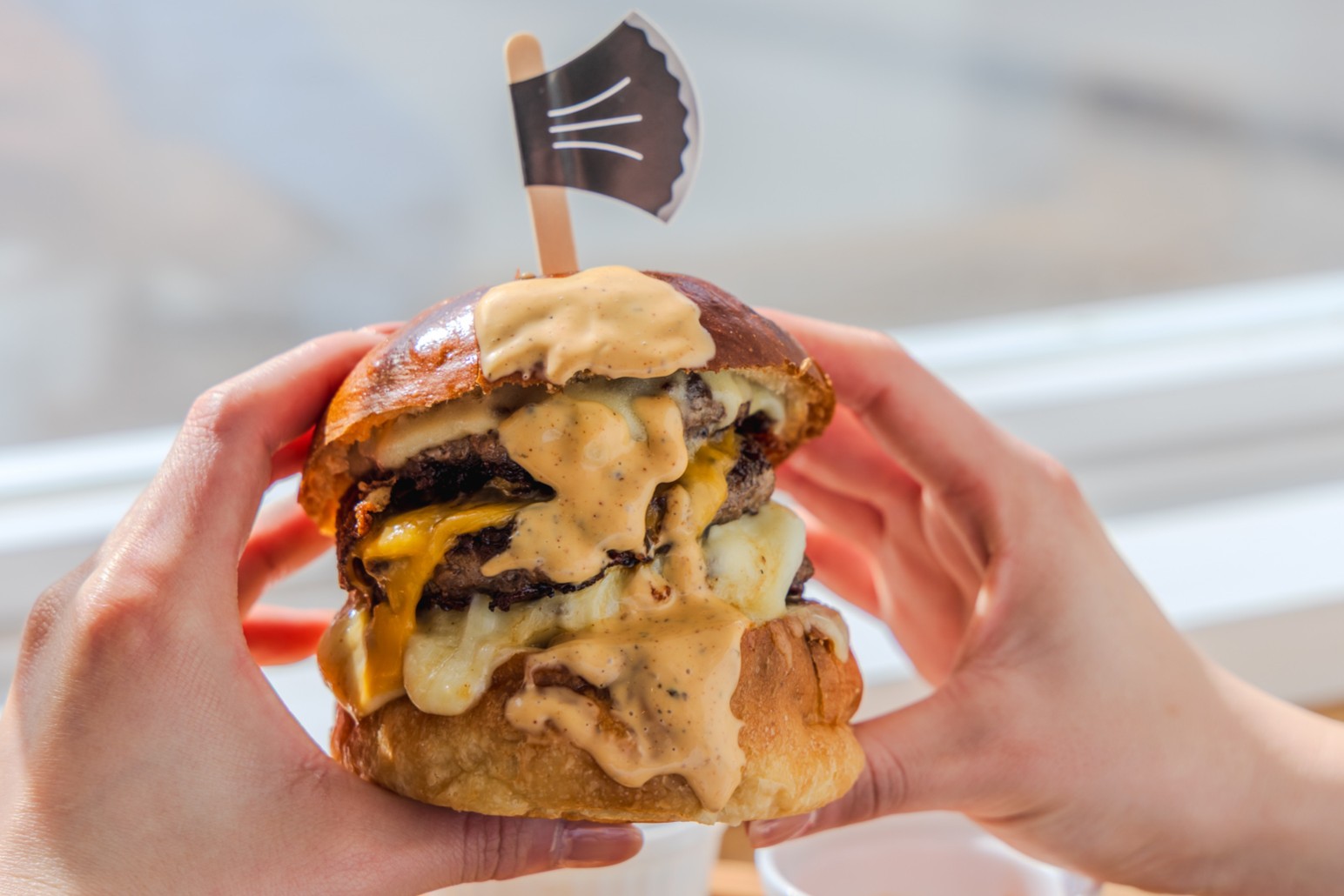 【総重量500g】5段パティと5種チーズが織りなす5周年記念バーガー期間限定販売 @箱根のカフェ