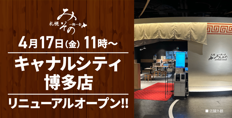 【装い新たに!】札幌みその「キャナルシティ博多店」(福岡県福岡市)が2026年4月17日(金)にリニューアルオープン!