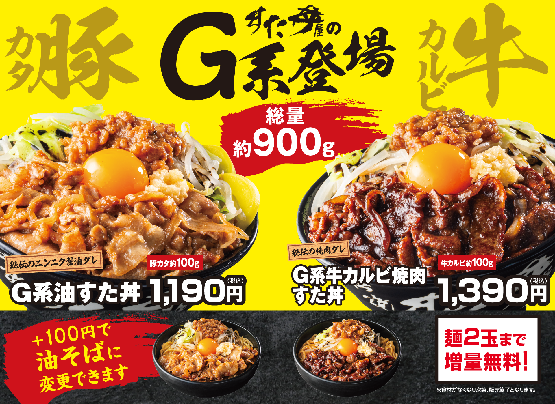 総重量約900gの圧倒的ボリューム!肉×ニンニク×背脂の新生活準備応援すたみなメニューが登場!2/27(金)~全国の伝説のすた丼屋で、『G系油すた丼』を含む4商品を一斉発売!PR TIMES グルメ
