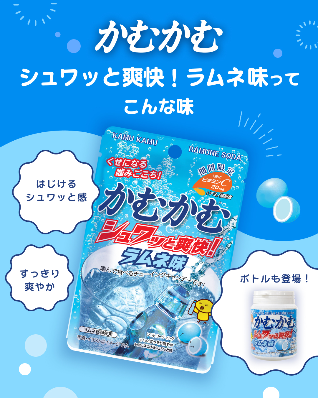 一粒で爽やかな味わいが感じられる「かむかむシュワッと爽快!ラムネ味」春夏限定で再登場!PR TIMES グルメ