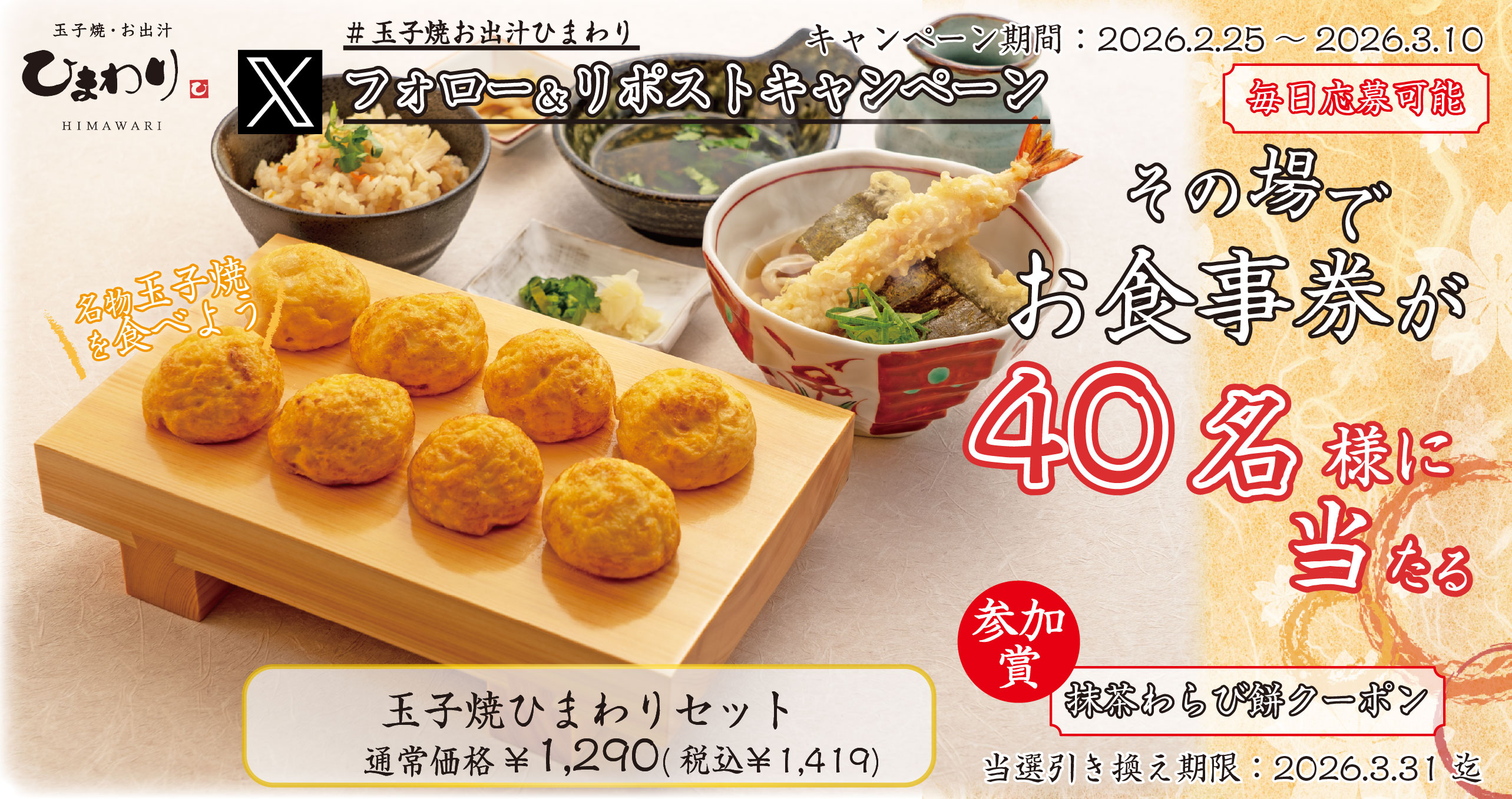 【玉子焼・お出汁ひまわり】2/25(水)~デジタルお食事券が当たるXキャンペーン開催!