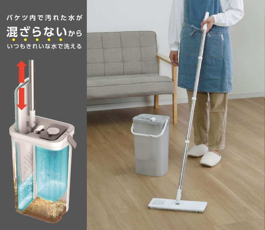普段のお掃除から、年末の大掃除にも!アテーナライフ きれいな水で洗えるスリム型モップ