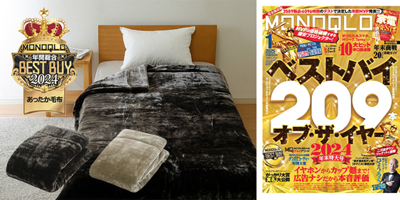 雑誌「MONOQLO」あったか毛布部門で2024年ベストバイに選ばれた「暖プラス 3つの効果であったか2枚合わせ毛布」が今シーズンも登場