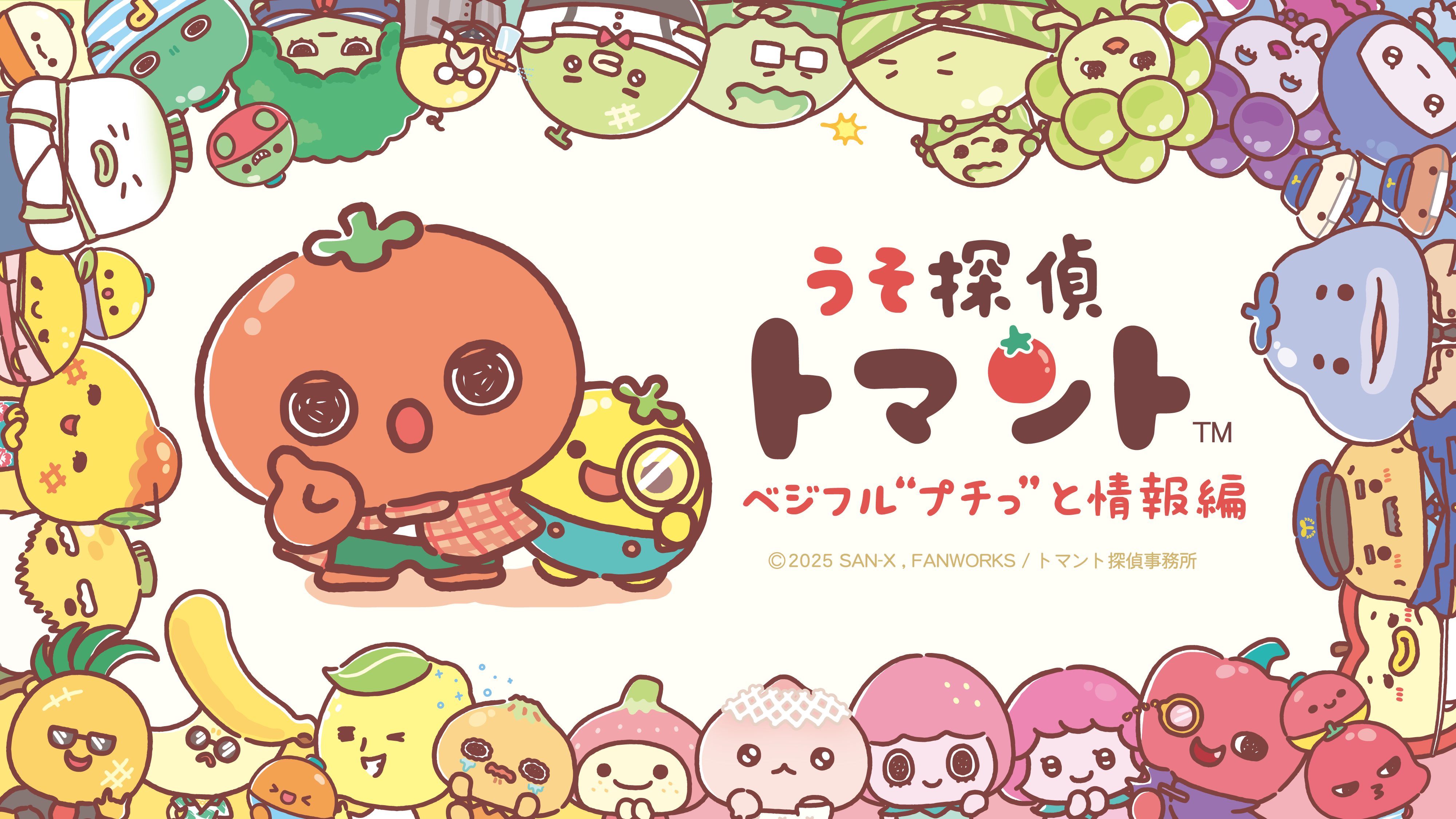 やさいやくだものをモチーフにしたサンエックス×ファンワークスの新キャラクター【うそ探偵トマント】ベジフル“プチっ”と情報編 放映開始が10月6日(月)に決定!