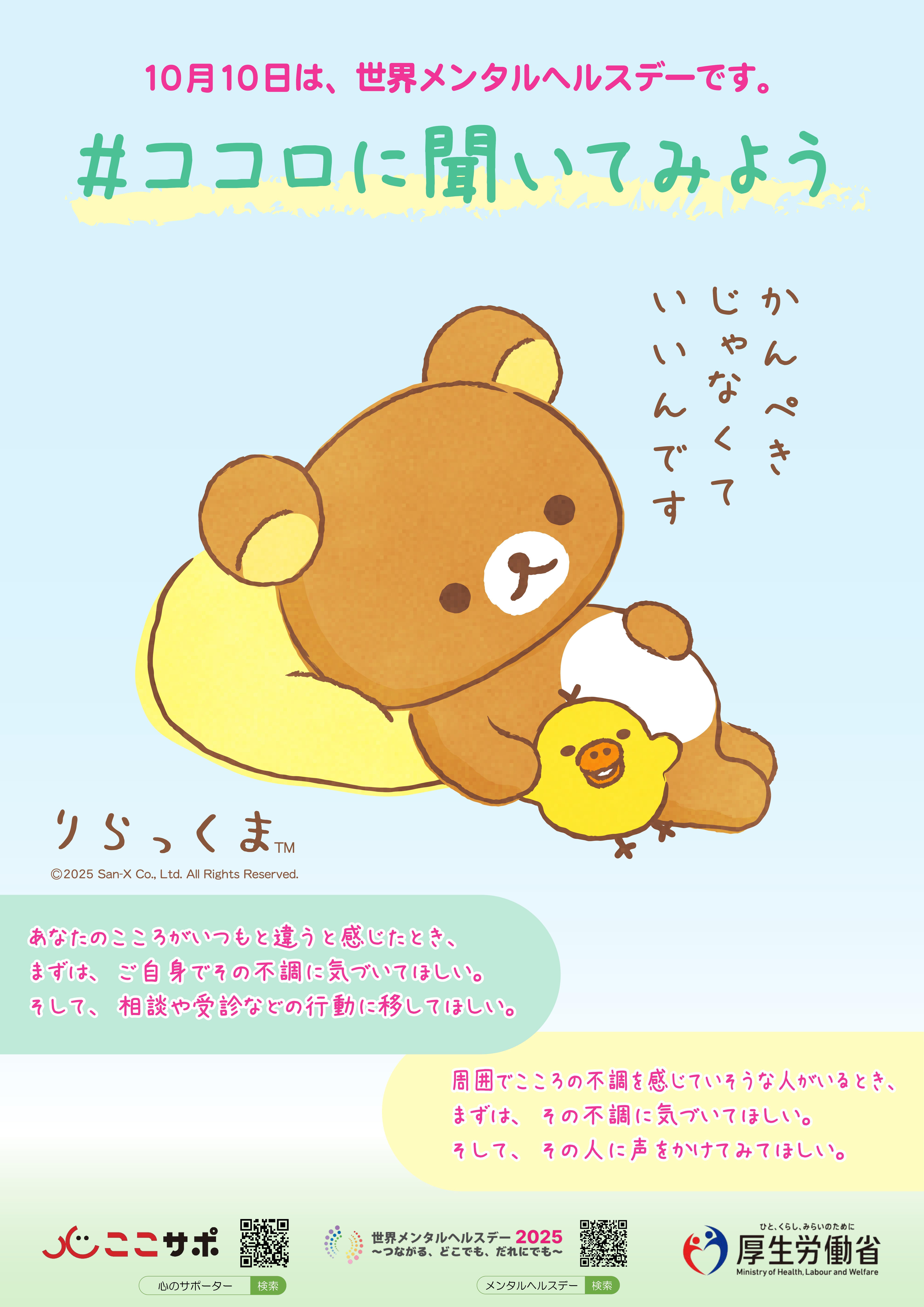 世界メンタルヘルスデー2025 リラックマが2年連続で応援サポーターに就任!