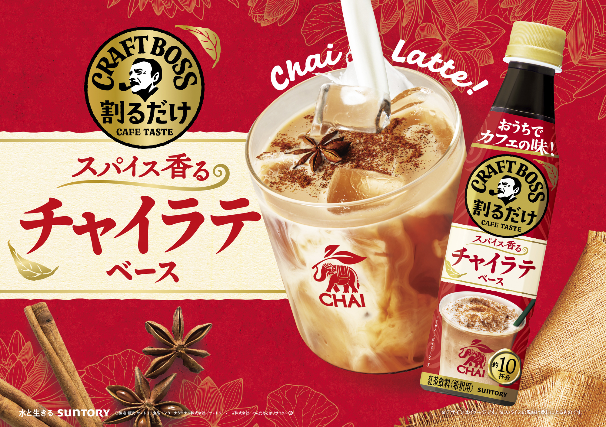 カフェのような贅沢な味わいをおうちで手軽に楽しめる!希釈タイプの「割るだけクラフトボスカフェ」シリーズから「チャイラテベース」新発売!(PR TIMES グルメ)