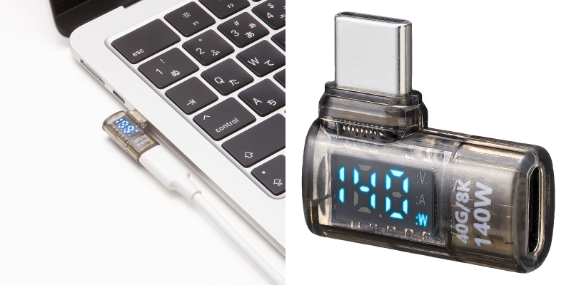 ゲームも作業も快適!PD140W×40Gbps×8Kに対応した電力表示付きL型Type-C変換アダプタを12月3日に発売