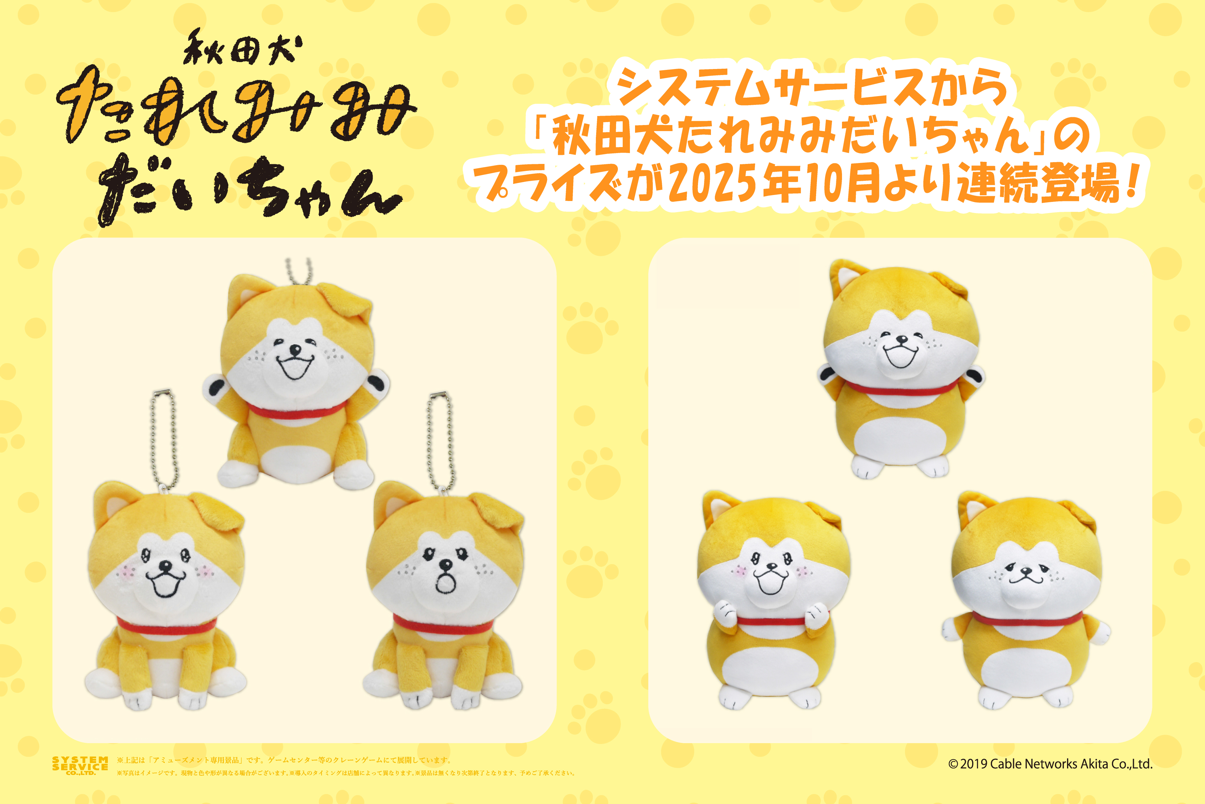 「秋田犬たれみみだいちゃん」のアミューズメントプライズが2025年10月より連続でシステムサービスから登場!