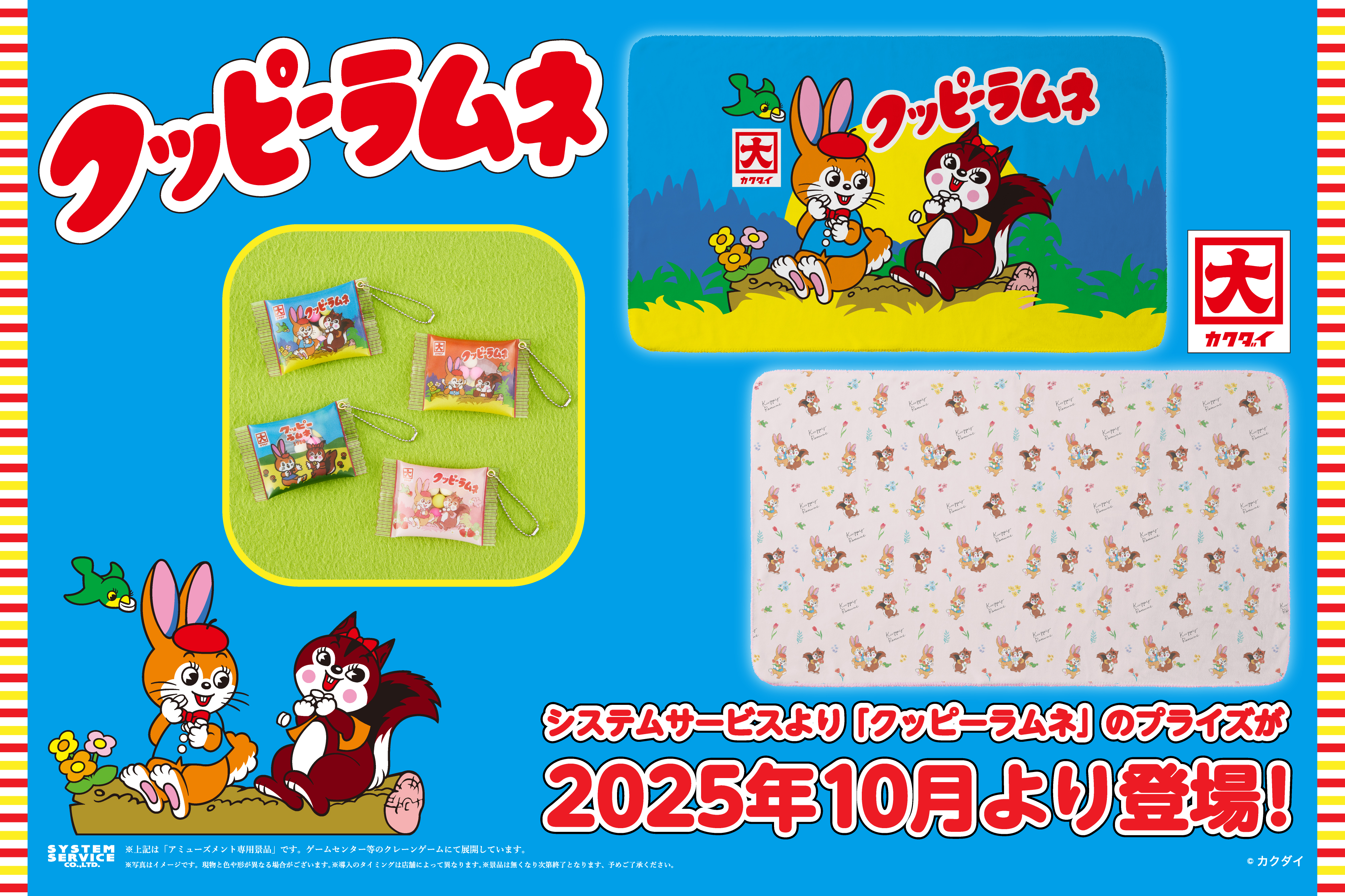 システムサービスより「クッピーラムネ」のプライズが2025年10月より登場!