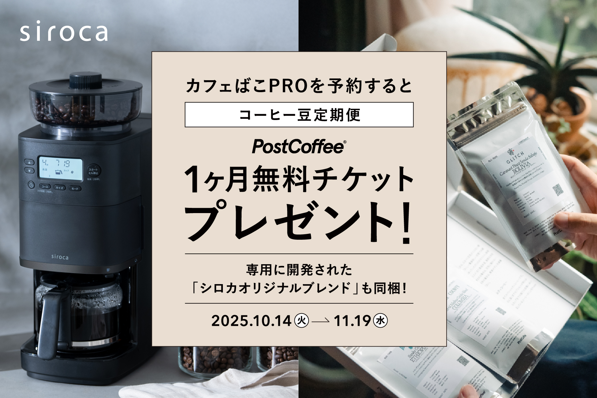 【シロカ カフェばこPRO発売記念!】コーヒー豆の定期便が1ヶ月無料で楽しめる予約特典キャンペーンを実施
