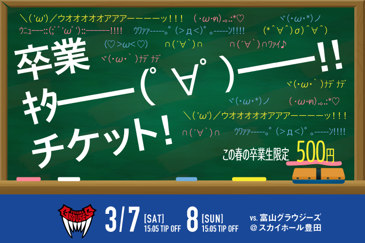 卒業生はワンコイン500円!シーホース三河が祝・卒業「卒業キタ━━(゜∀゜)━━!!チケット」を2/6(金)より限定販売