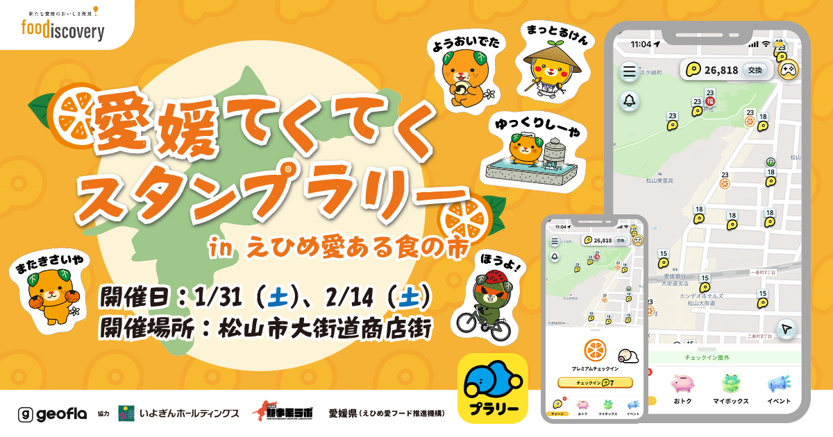 【ジオフラ】おでかけエンタメアプリ『プラリー』が、愛媛最大級の食イベント「foodiscovery」にてデジタルスタンプラリー企画「愛媛てくてくスタンプラリー」を開催