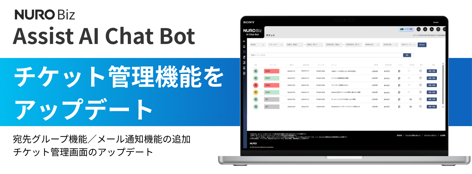 ソニービズネットワークス、「Assist AI Chat Bot」のチケット管理機能をアップデート