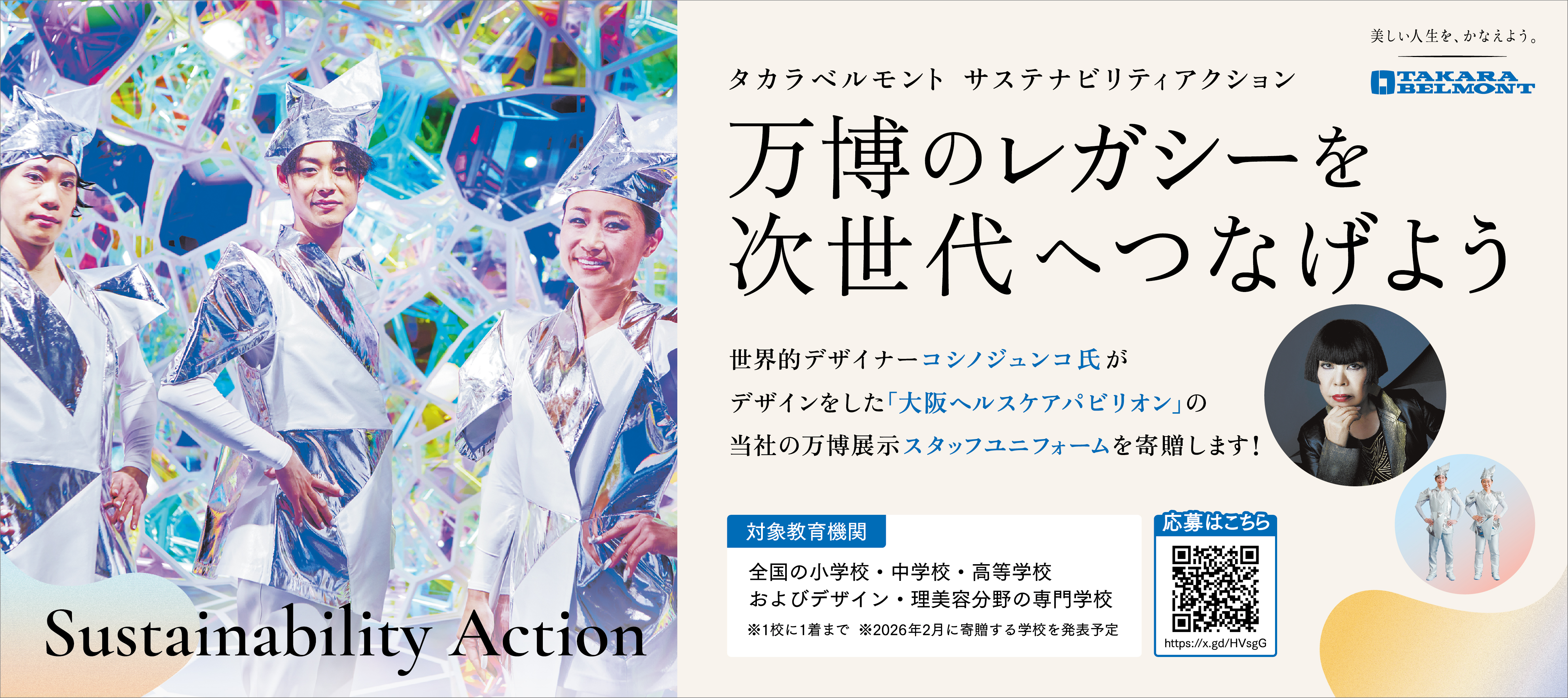 サステナビリティアクションプラン第一弾 コシノジュンコ氏デザインの万博ユニフォーム寄贈へ 全国の教育機関を対象に、本日、10/14から募集