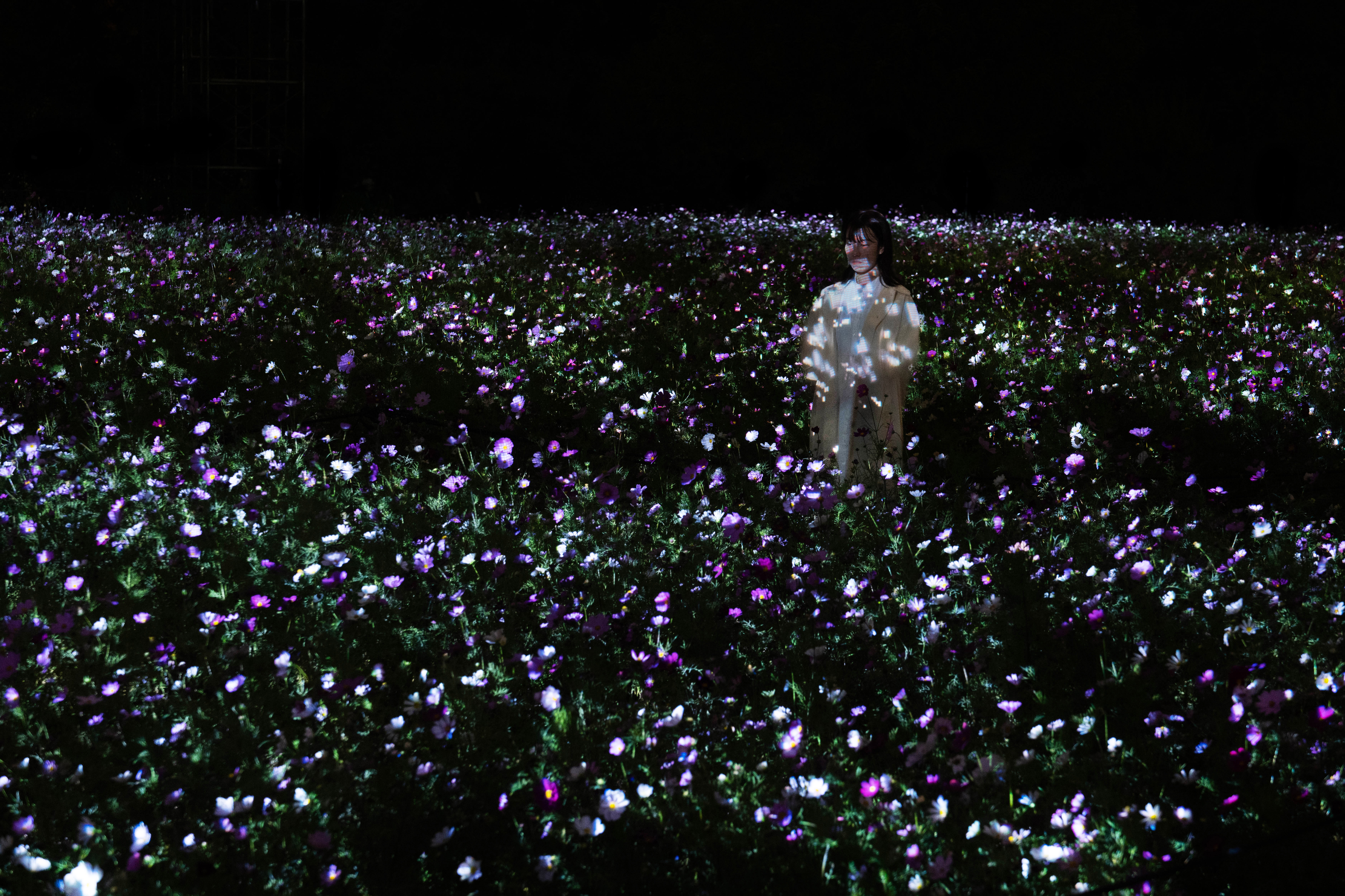 「チームラボ ボタニカルガーデン 大阪」が、秋の景色に。コスモスが光り輝く作品を、10月31日(金)から11月23日(日)まで公開。今年も「大阪・光の饗宴2025」に参加。