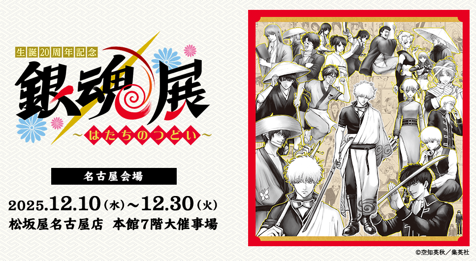 【「生誕20周年記念 銀魂展 ~はたちのつどい~」名古屋会場】 チケットを10月18日(土)10時より発売!一部日時指定制での販売。