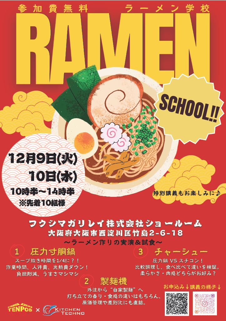 【キッチンテクノ】製麺から盛り付けまでを一日完結で体験!大好評の“ラーメン学校”を2025年12月に2日連続開催決定!