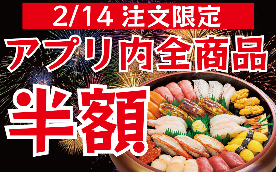 【つきじ海賓】全店開催!つきじ海賓アプリで全商品半額!!2月14日(土)限定