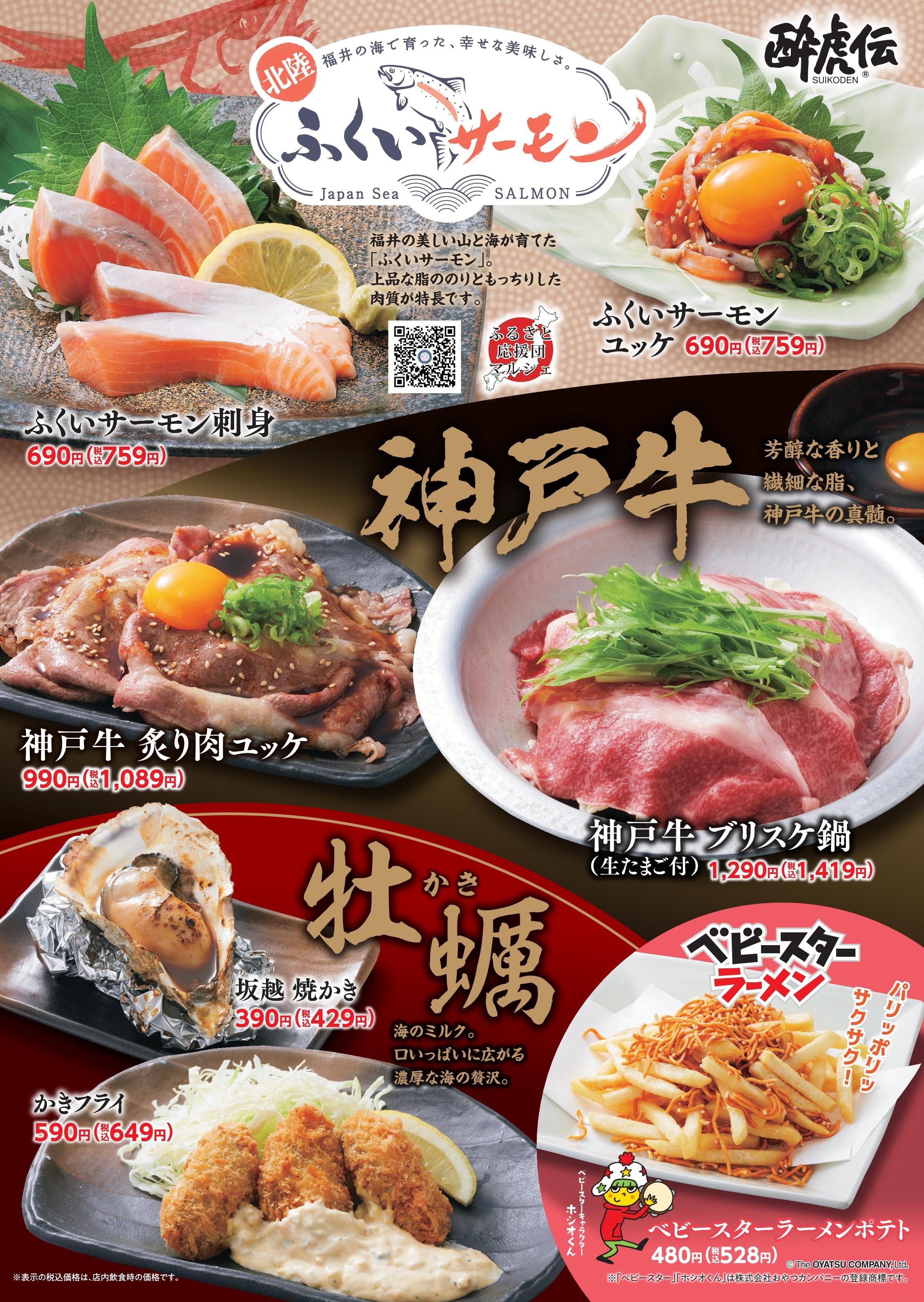 【酔虎伝】「神戸牛」や「サーモン」を堪能する季節の逸品フェア、2月10日(火)より全国で開始