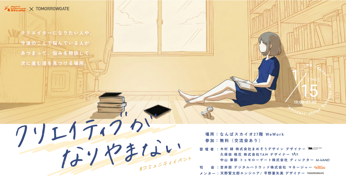 デジタルハリウッドSTUDIOなんば×トゥモローゲート共催第2回【クリエイター駆け出し・未経験限定イベント】『クリエイティブがなりやまない。』