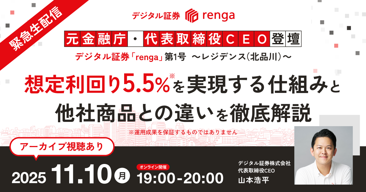 【11/10(月) 19:00~20:00】デジタル証券「renga」第1号~レジデンス(北品川)~ ウェビナーを開催します