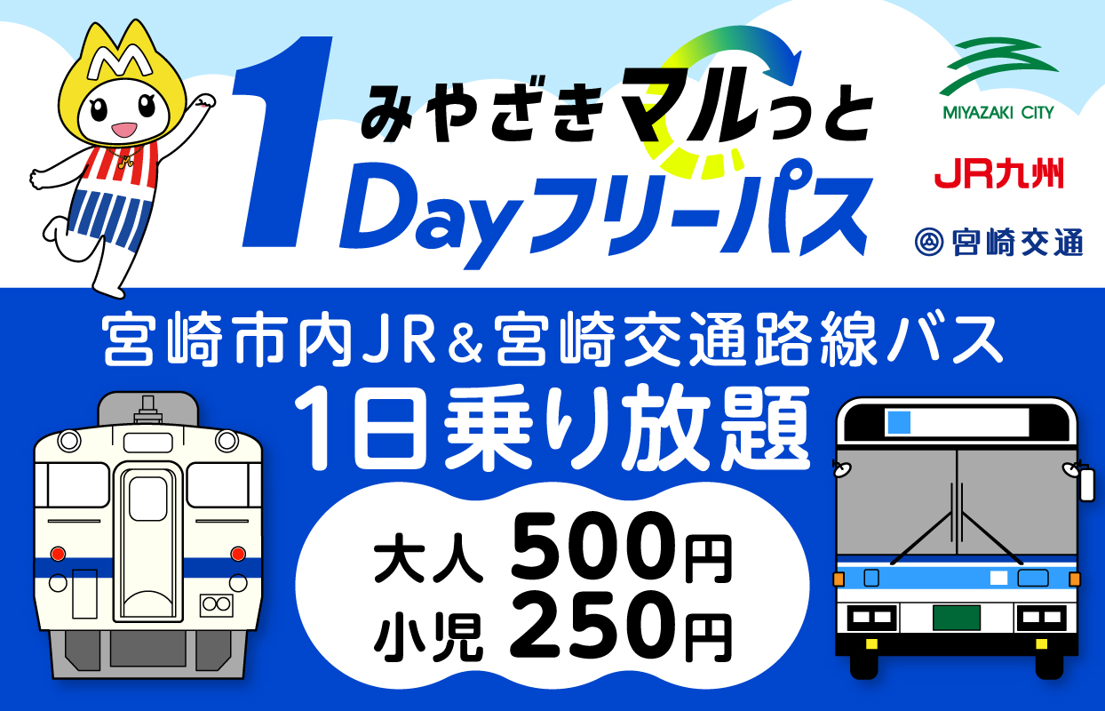 my routeでお得なチケット再び!「みやざきマルっと1Dayフリーパス」第3期を10月24日から販売開始!宮崎市内のバス・鉄道が、大人800円、小児400円で1日乗り放題!