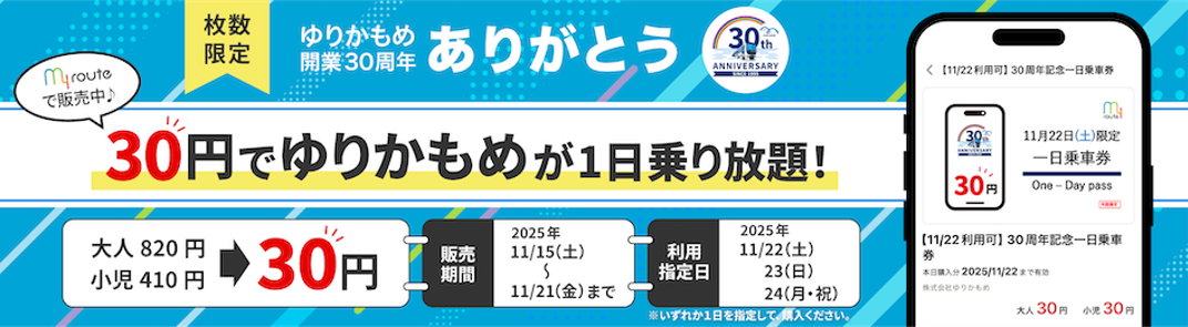 ゆりかもめが30円で1日乗り放題!?my routeでお得なチケットを枚数限定で販売します