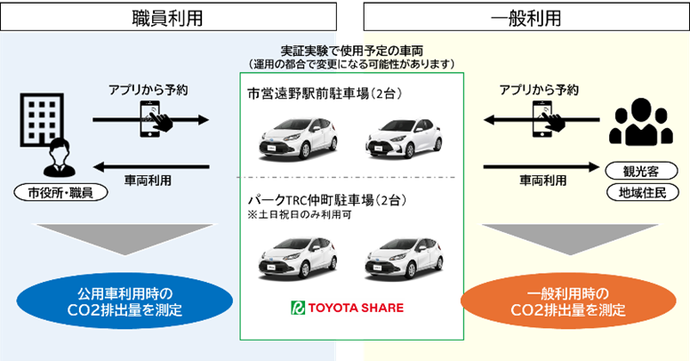 公用車にハイブリッド車を導入し、カーシェアとして活用する実験を行います