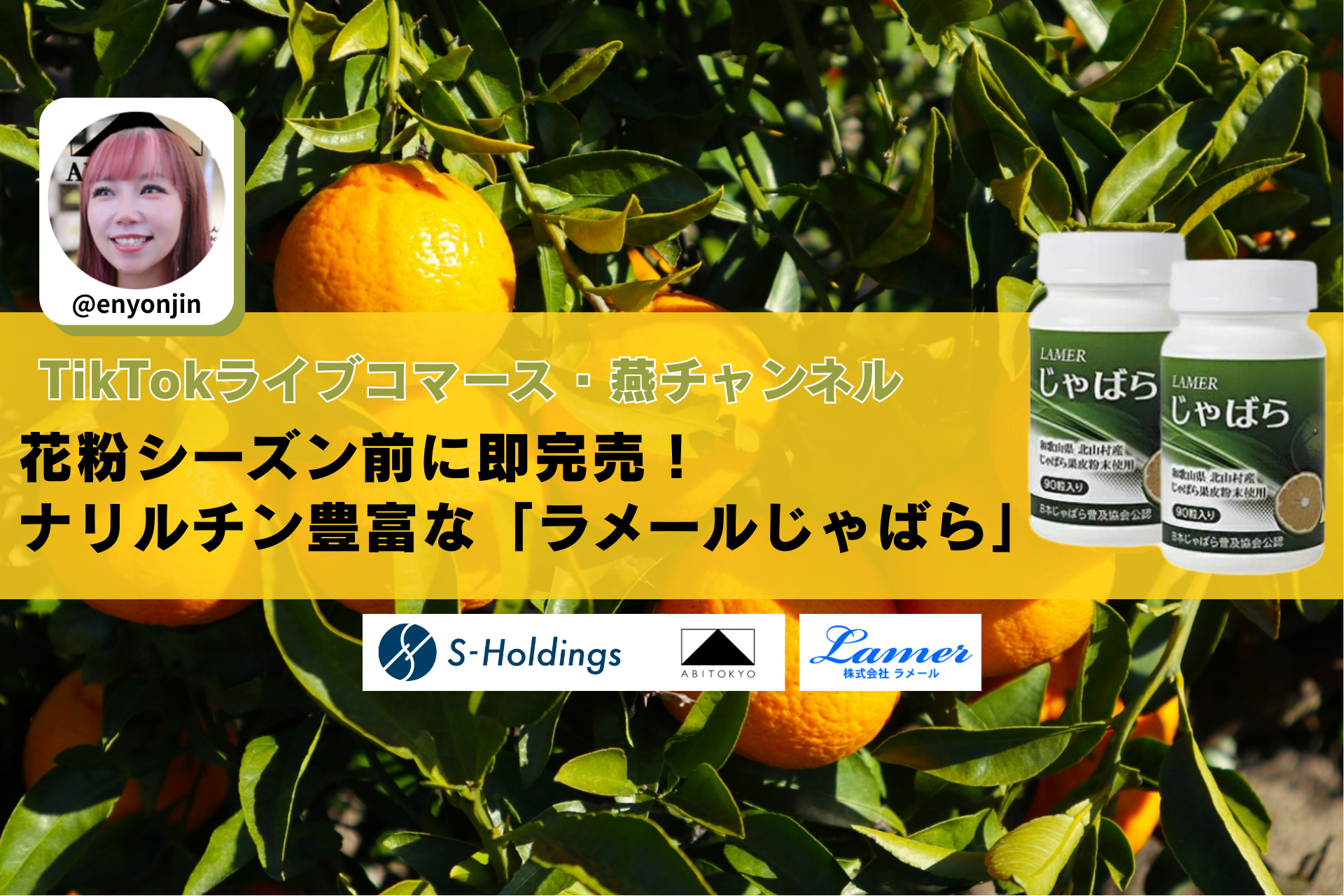 【完売御礼】TikTokライブコマース「燕チャンネル」にて、和歌山県産“幻の果実”を使用したサプリメント「ラメールじゃばら」が開始30分で1,100個完売