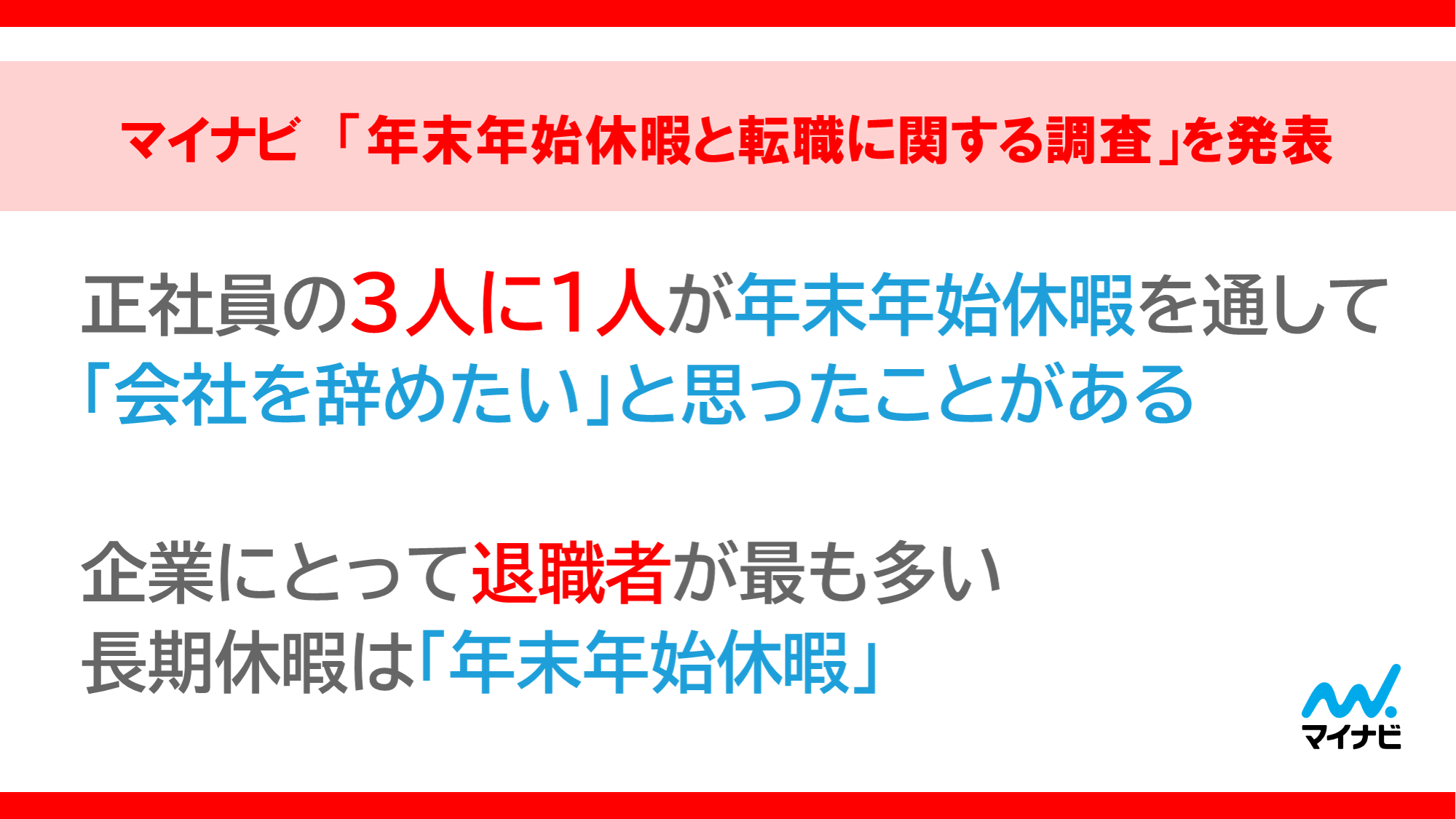 マイナビ 「年末年始休暇と転職に関する調査」を発表