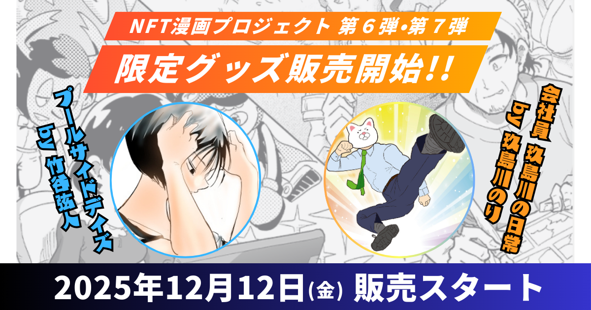 【NFT漫画プロジェクト】第6弾『プールサイドデイズ』・第7弾『会社員 玖島川の日常』の限定オリジナルグッズ販売を2025年12月12日(金)より開始!!