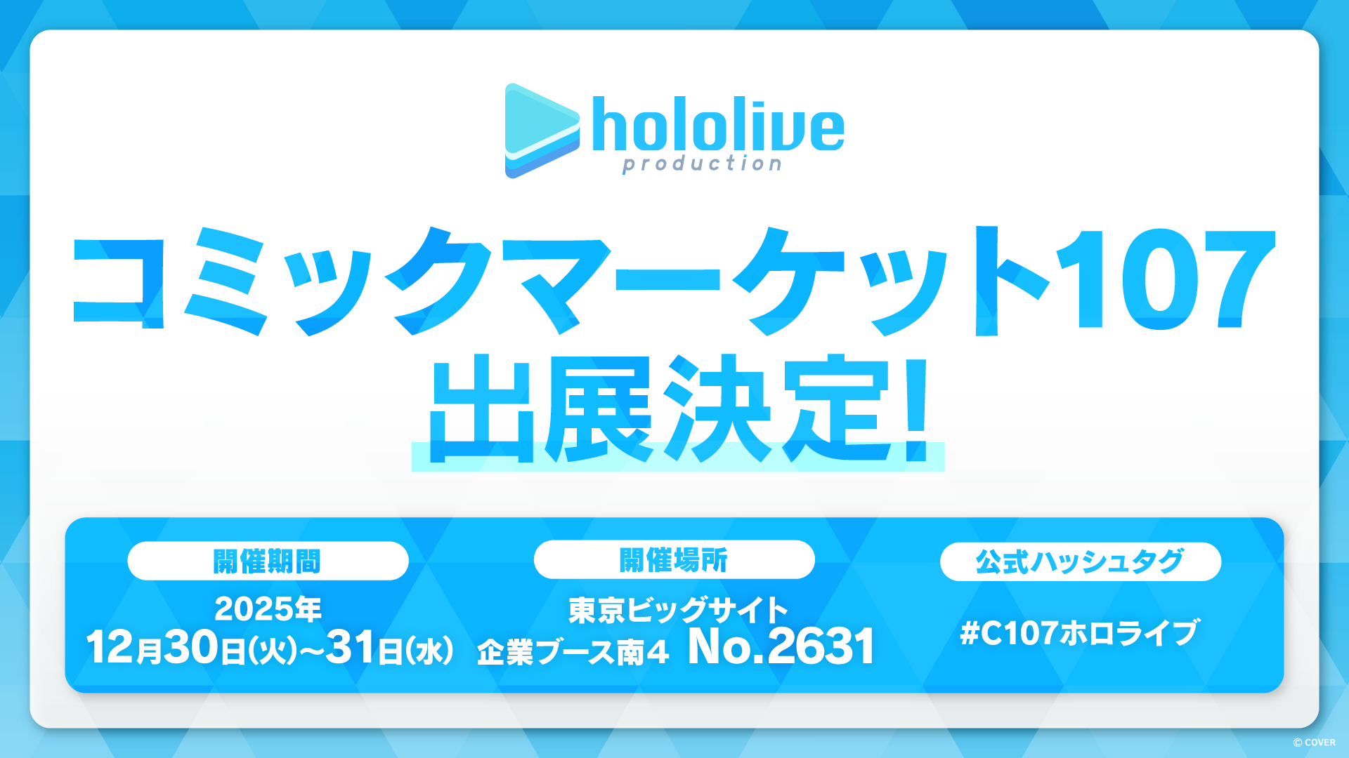 ホロライブプロダクションがコミックマーケット107出展決定!