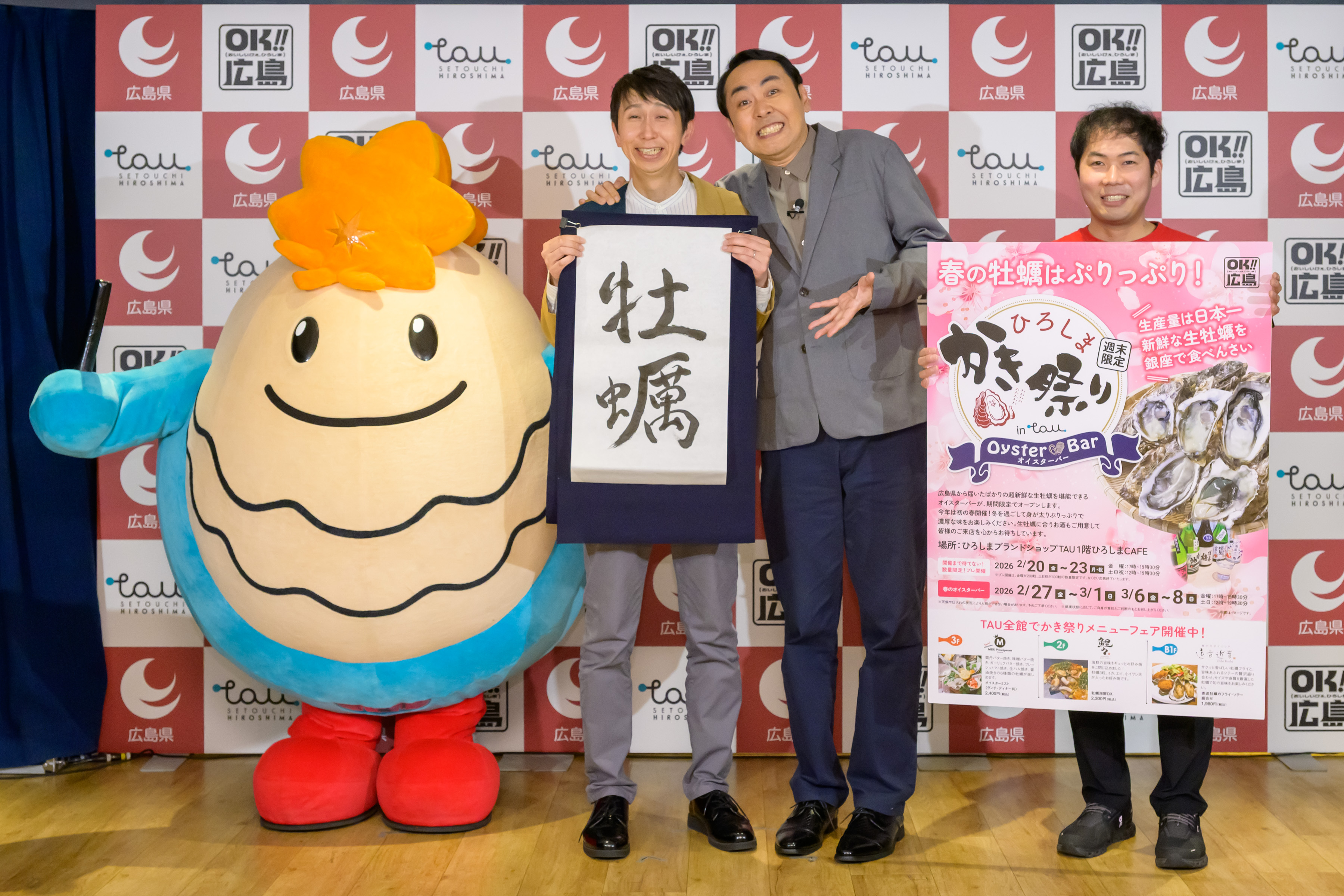 【ひろしまブランドショップ TAU】広島県出身のアンガールズが、かき関連業界にエール!かきグルメ堪能で「うまいでがんす~!」連発!田中さんの提案で『山根牡蠣』に改名!?