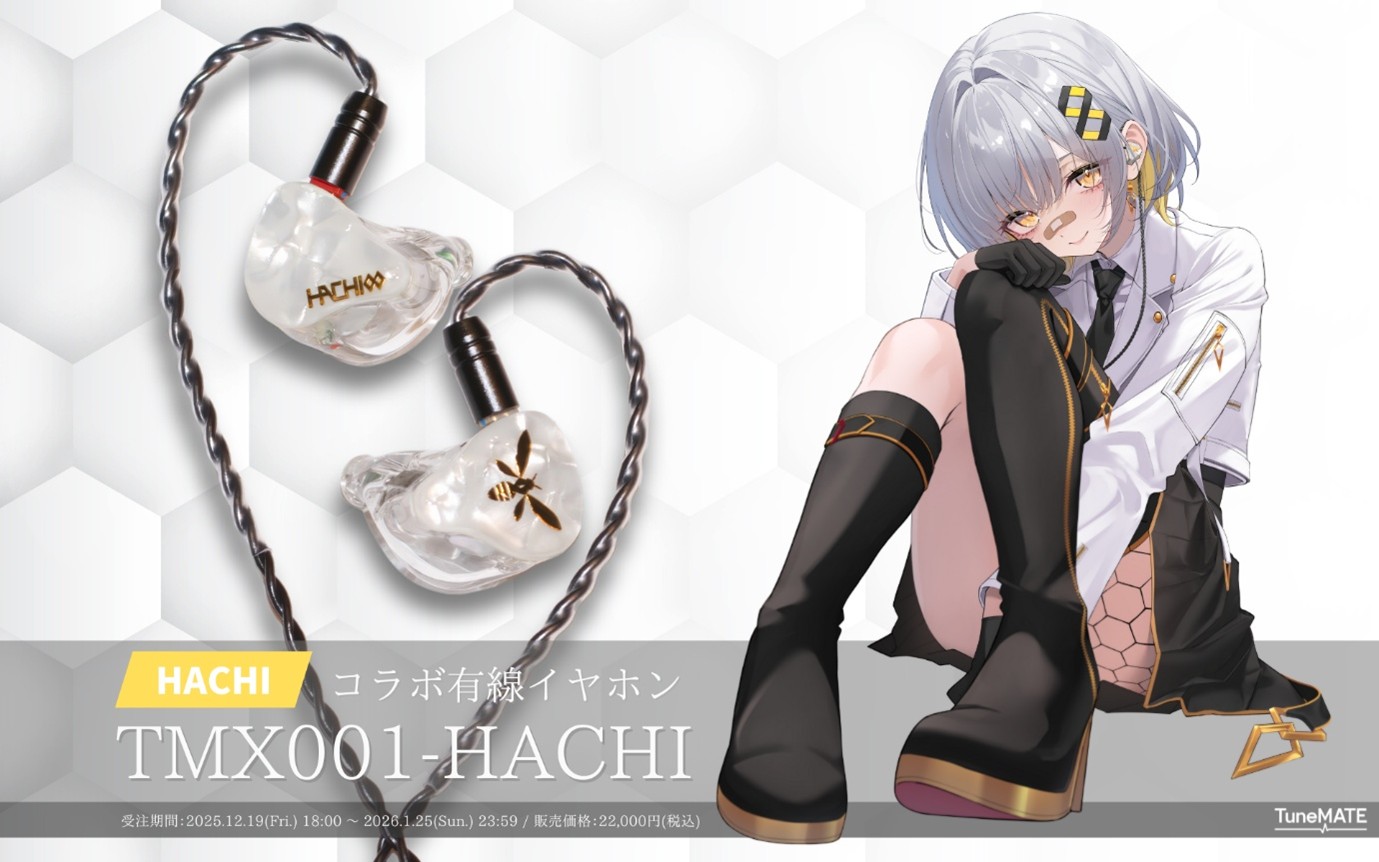 サイバースター、IP×MD事業の新ブランド「TuneMATE」が本格始動 33万人超が支持するVSinger・HACHIとのコラボイヤホンを第一弾として発売